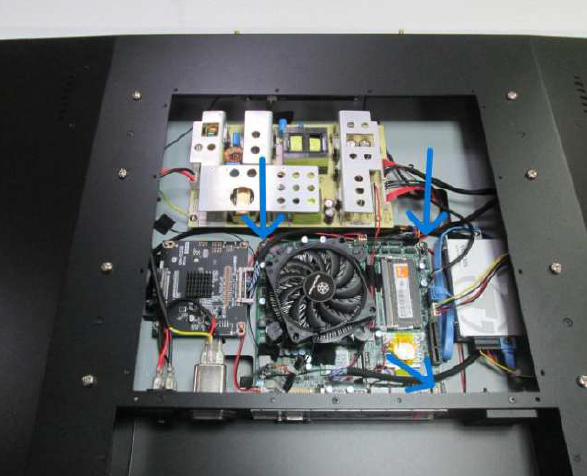 Loosed the rear enclosure 4 sides’ screws ( blue marked ).