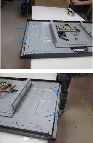 Loosed panel’s left / right side “ L bracket “ screws ( blue marked ).