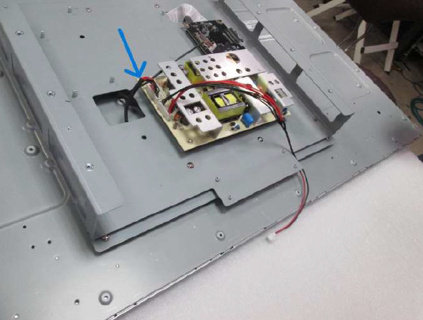 - Removed LVDC Ground cable ( blue marked ), LVDS cable power cable ( red marked ) and removed LVDS cable ( blue marked ).