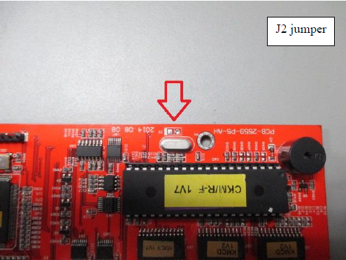 - Find the jumper J2(on red board) or J3(on green board), then use either paper clip or scissors to touch the two boxes of J2 then plug the power and hold for 5~10sec while holding the J2 in order to close/short the jumper.